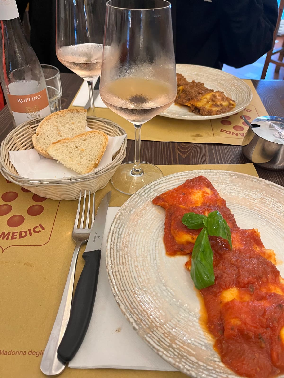 토마토 소스 라비올리가 피렌체에서 제일 맛있었다. 전혀 파스타가 불지 않고 쫄깃하고 속에는 치즈가 적당히 채워져있었다. 예전에 셰프 보야디 라비올리 통조림은 불어터져서 식감이 소름돋게 흐물거렸는데 진짜 라비올리는 이런 맛이구나